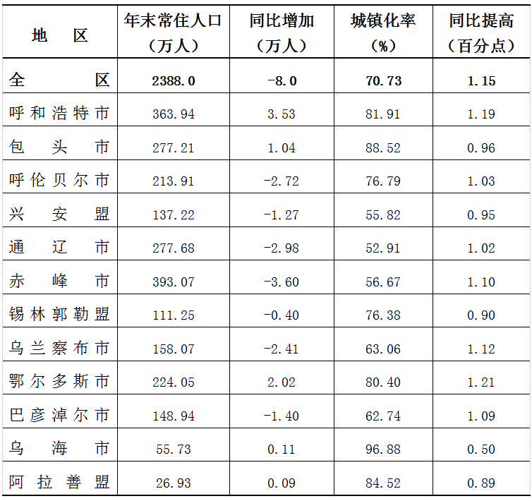 2024年末 ,全区常住人口2388万人,比2023年减少8万人,下降0.33%。