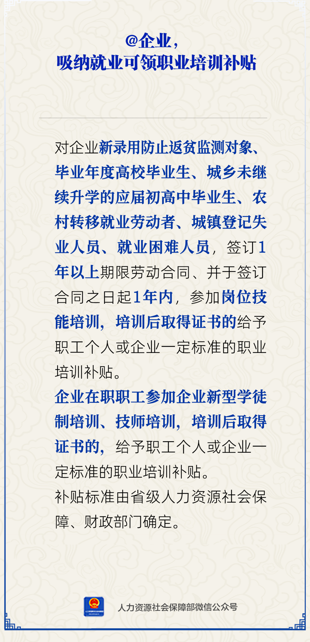 @企业,吸纳就业可领职业培训补贴