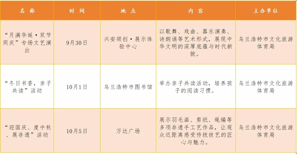 脚步丈量诗与远方,心动就在乌兰浩特!这个假期,让我们相约乌兰浩特,共赴秋日之约,留下属于您的独特记忆。精彩活动不间断,暖心服务不停歇——我们已准备好迎接您的到来!赶紧收藏这份活动清单,转发给身边的小伙伴,十月乌兰浩特,不见不散!