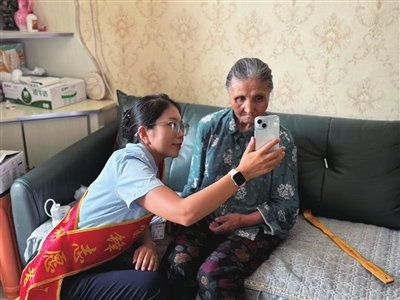 苏尼特左旗政务服务与数据管理局工作人员为不便出门的高龄老人、弱势群体提供上门服务。