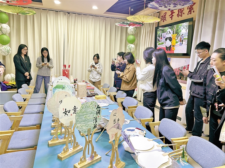 宣讲团成员在文联路社区非遗传承与发展基地欣赏非遗作品。