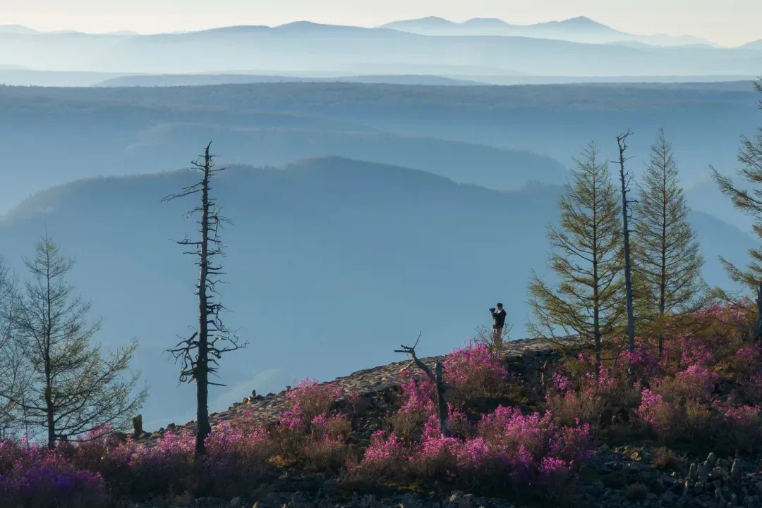 兴安杜鹃扎根万年前的火山熔岩,在零下 40℃的寒冬孕育,5月顶着冰雪盛放。