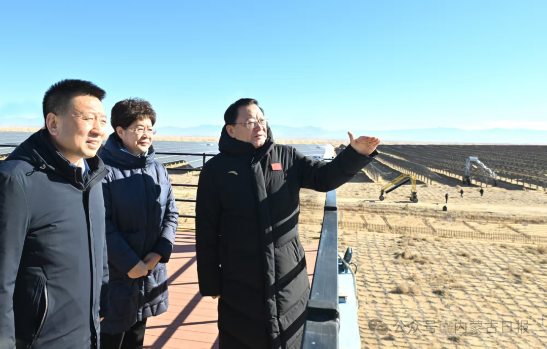 11月17日,自治区党委书记王伟中来到腾格里沙漠东南部新能源大基地,认真听取项目规划、建设和运营等情况介绍。草原云·内蒙古新闻网记者 马建兵 摄