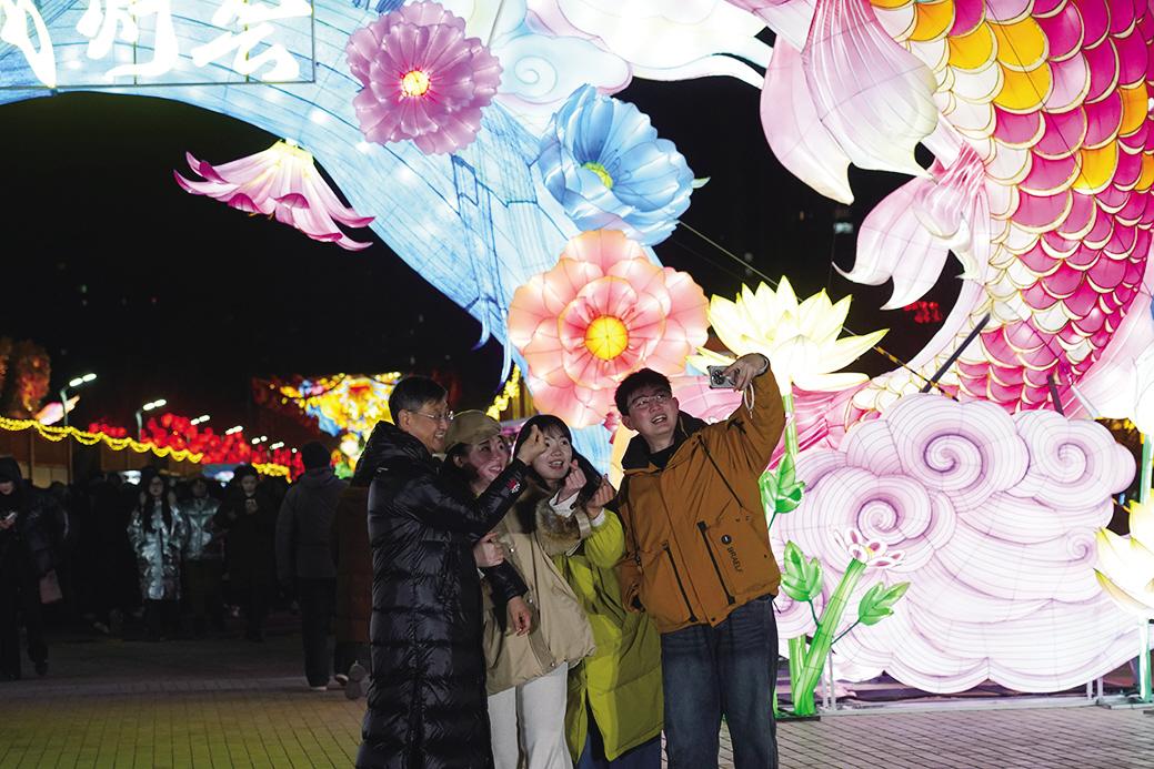本次灯会融合传统民俗与现代科技,亮点纷呈。夜空中,无人机编队变幻出“新春吉祥”“鹿城腾飞”等字样与图案,引来阵阵喝彩;由百余名演员组成的国风巡游队伍,与游客亲切互动,生动展现优秀传统文化魅力。非遗鱼灯巡游中,数十盏精巧鱼灯摇曳生姿,光影流转,犹如一幅流动的民俗画卷。漫步园区,缤纷灯组渐次点亮,宛若星河倾泻,熠熠生辉。市民游客悠然穿行于光影之间,不时驻足拍照,记录温馨时刻。欢声笑语此起彼伏,处处洋溢着喜庆团圆、祥和美满的节日氛围。