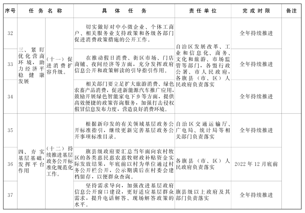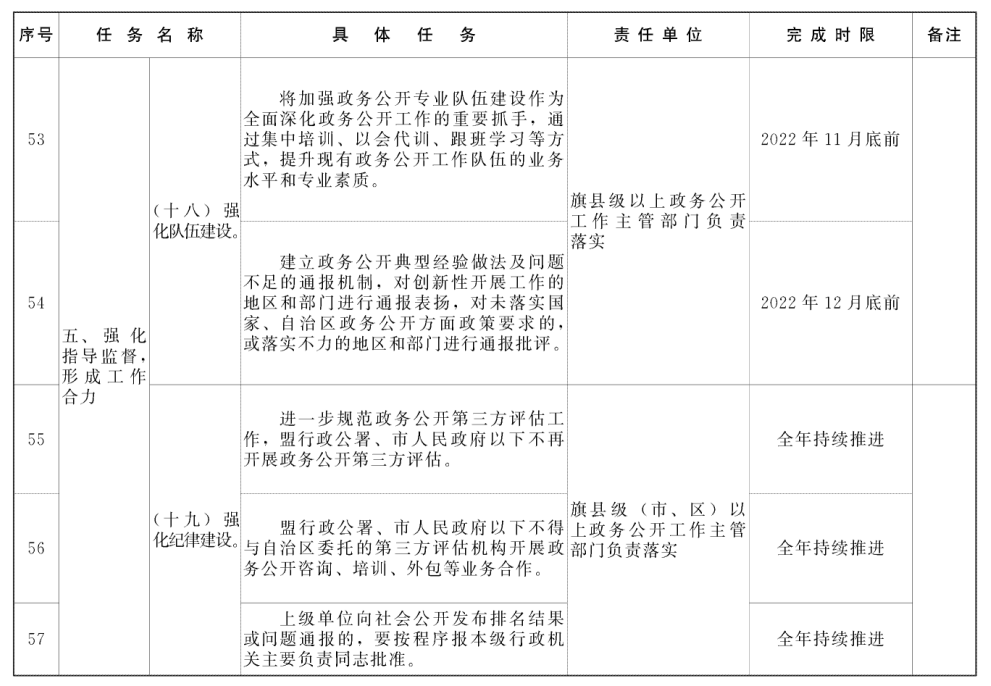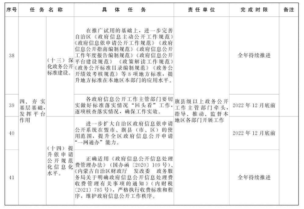 附件:内蒙古自治区2022年政务公开工作要点任务台账
