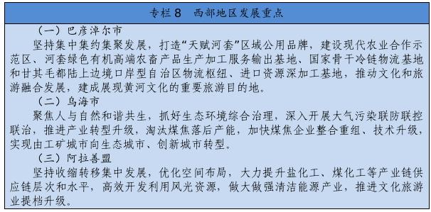——经济转型取得重大突破。发展方式粗放特别是产业发展较多依赖资源开发状况总体改变,现代化经济体系加快构建,科技创新能力全面提升,基础设施保障能力持续提高,“两个基地”向高端化、智能化、绿色化加速转型,若干产业链供应链完整链条和创新链价值链关键环节根植生成,东中西部差异化协调发展水平显著提高,优势突出、结构合理、创新驱动、区域协调、城乡一体发展格局基本形成。
