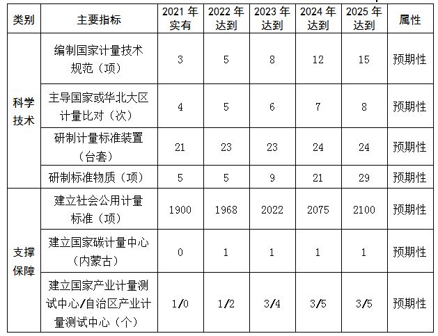 内蒙古自治区“十四五”计量发展主要指标