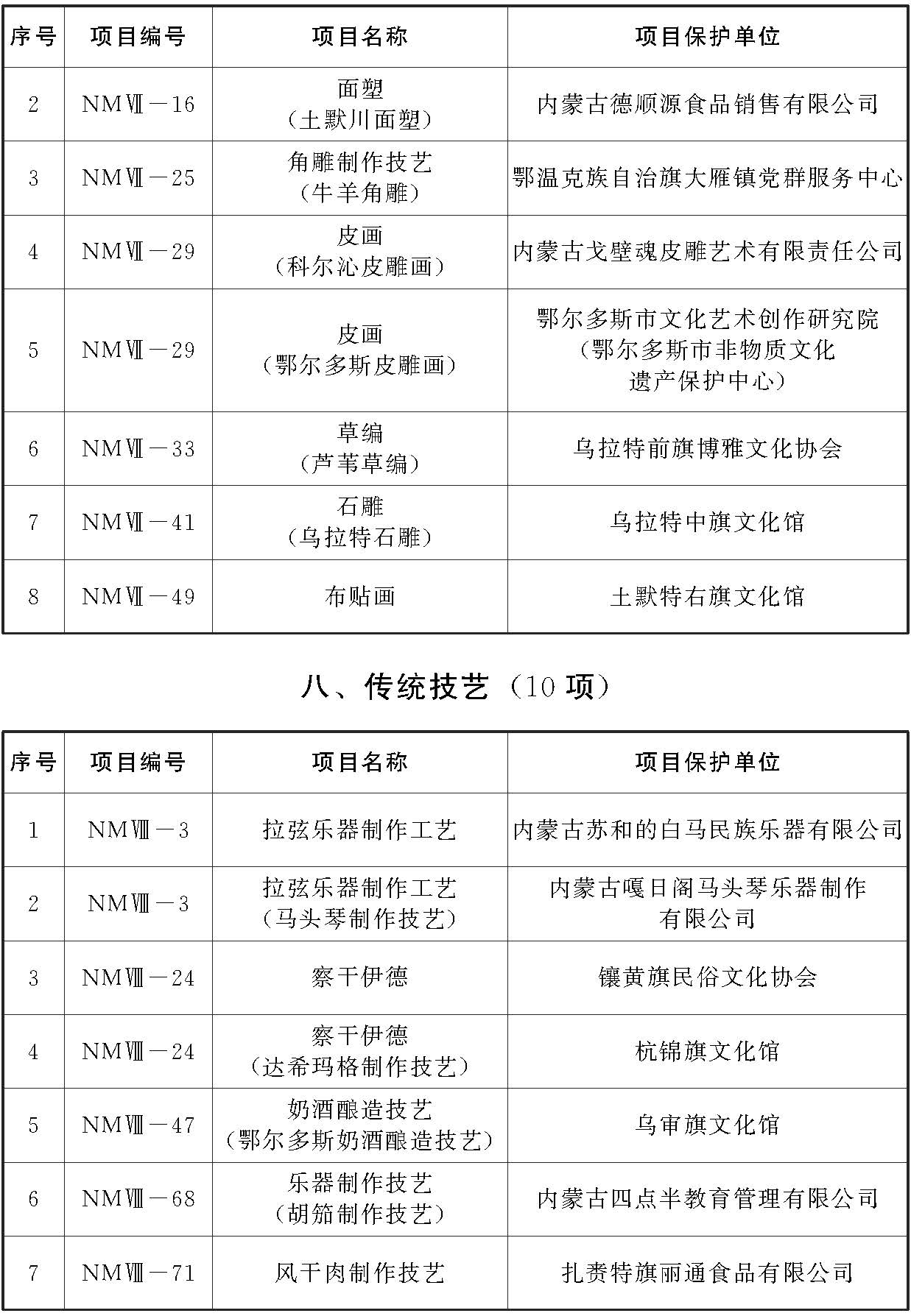 为认真贯彻落实党中央、国务院关于加强非物质文化遗产保护工作的决策部署,进一步推动全区非物质文化遗产保护工作,不断完善自治区非遗名录体系,自治区人民政府决定命名河套顺口溜等58个项目为第七批自治区级非物质文化遗产代表性项目,格萨(斯)尔等28个项目为自治区级非物质文化遗产代表性项目名录扩展项目,现予公布。