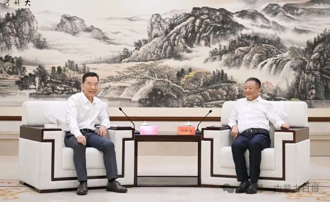 9月11日,自治区党委书记孙绍骋在呼和浩特会见明阳集团党委书记、董事长张传卫。